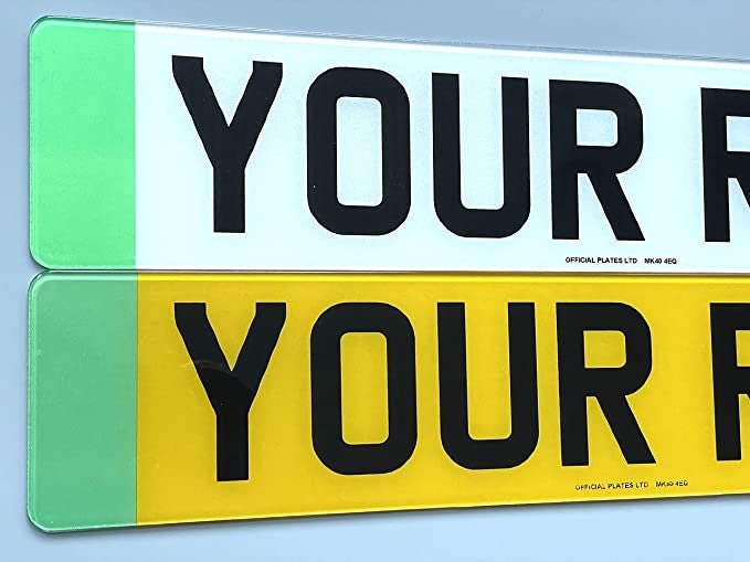 pair of top quality number plates made by a maker selling for 30 years front white and rear yellow u...