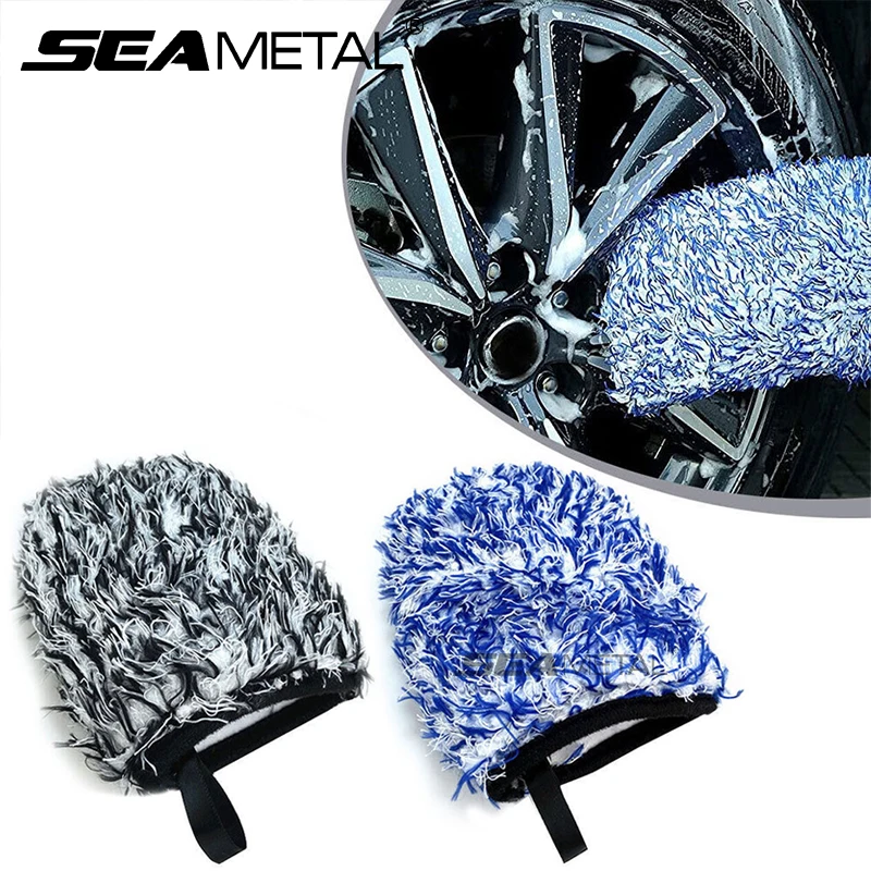 SEAMETAL Super Soft Car Microfiber Wheel Detailer Wash Glove Thickening Two-sided Car Detailing Pock...