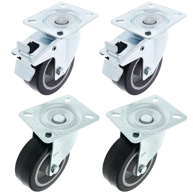 Roadworx Black Wheel Bundle 100 mm, Set of Swivel Castors, Consisting of two (with brakes) and two (...
