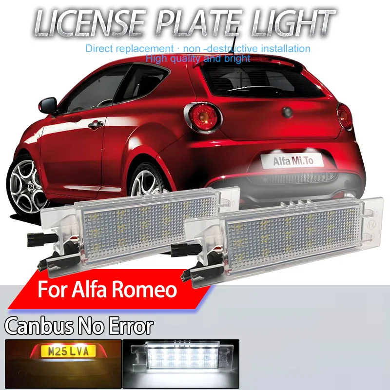 2Pcs Canbus LED License Plate Light White For Alfa Romeo 147 156 159 166 Brera Giulietta Type 940 Mi...