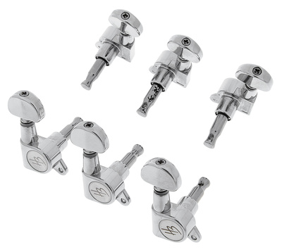 Harley Benton Parts J03CR L6 Tuner Set, Set of Machine Heads, Grover-style tuning knobs, Configurati...