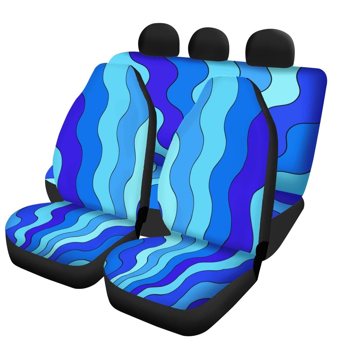 Blue Waves Car Seat Covers Full Set, Car Seat Covers, Boho Car Acce...