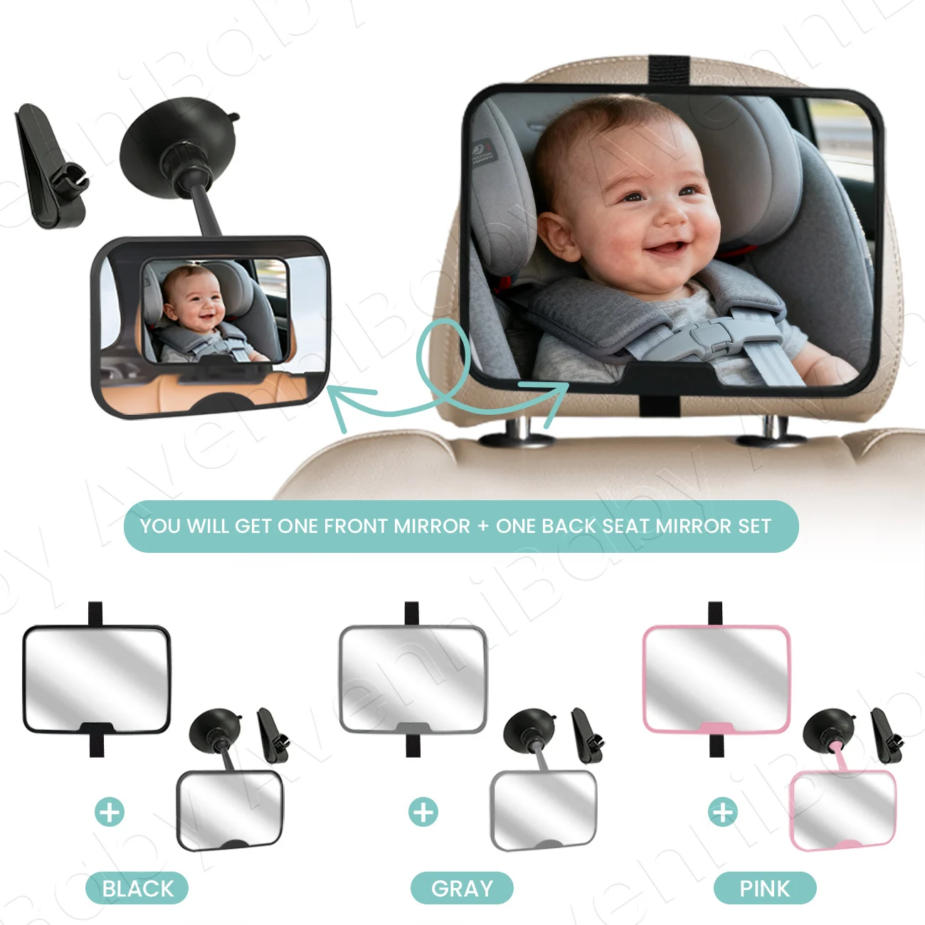 2PC Baby Car Mirror Set Including Clip-On Forward-Facing Mirror & 360° Rotatable Shatterproo...