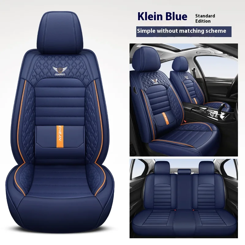 5-seat universal car seat cover, new nappa leather ice silk fixed lumbar support, four-season univer...