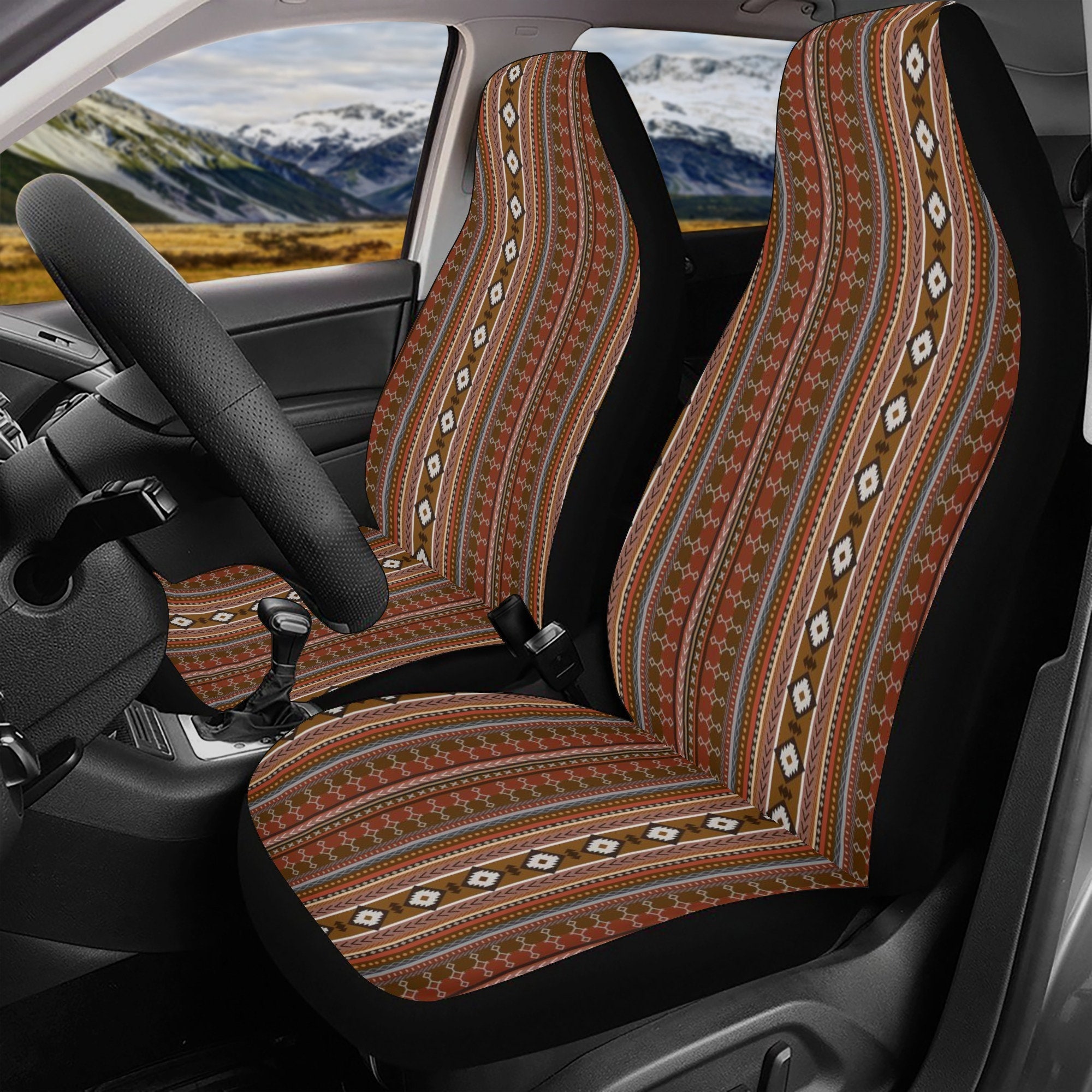 Boho Rust Car Seat Covers Pair, Ethnic Car Seat Covers, Seat Cover ...
