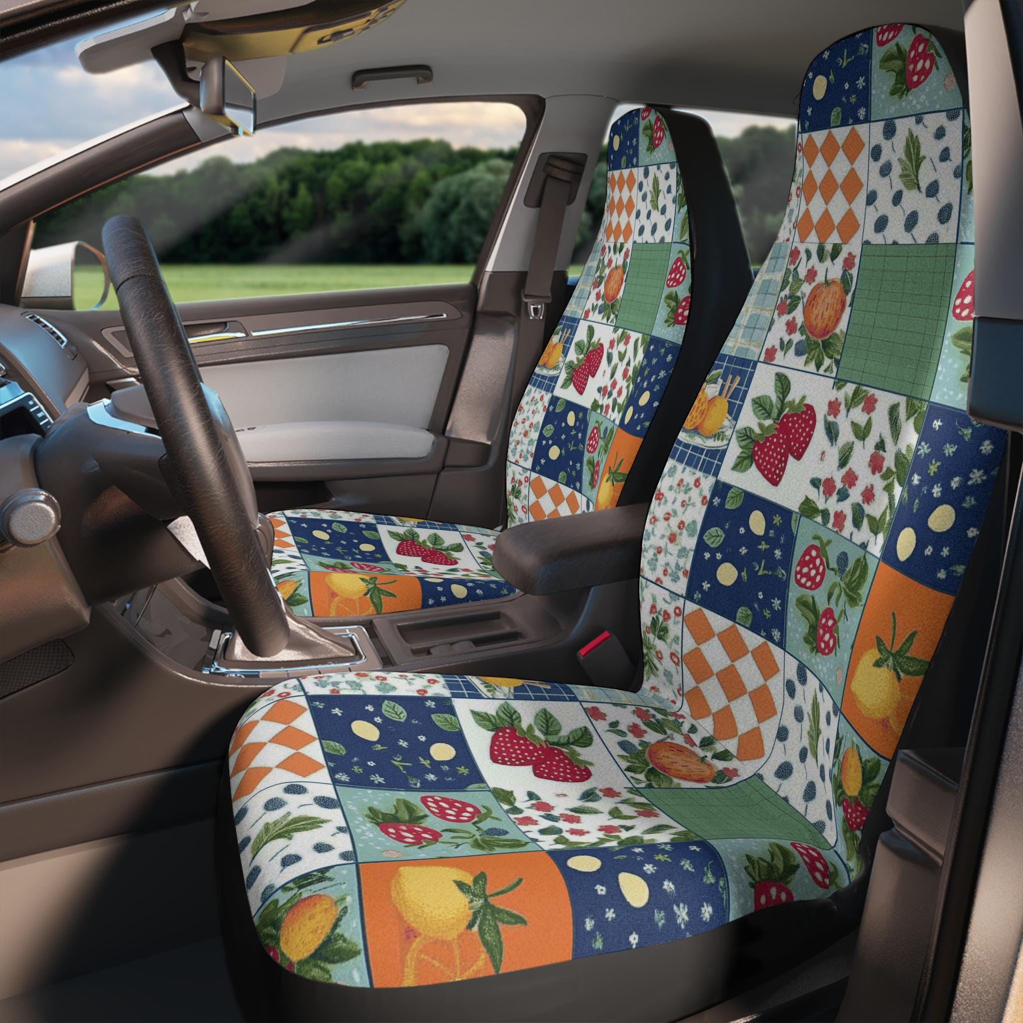 Strawberry Boho Car Seat Covers, Summer Retro Vintage Patchwork Car...
