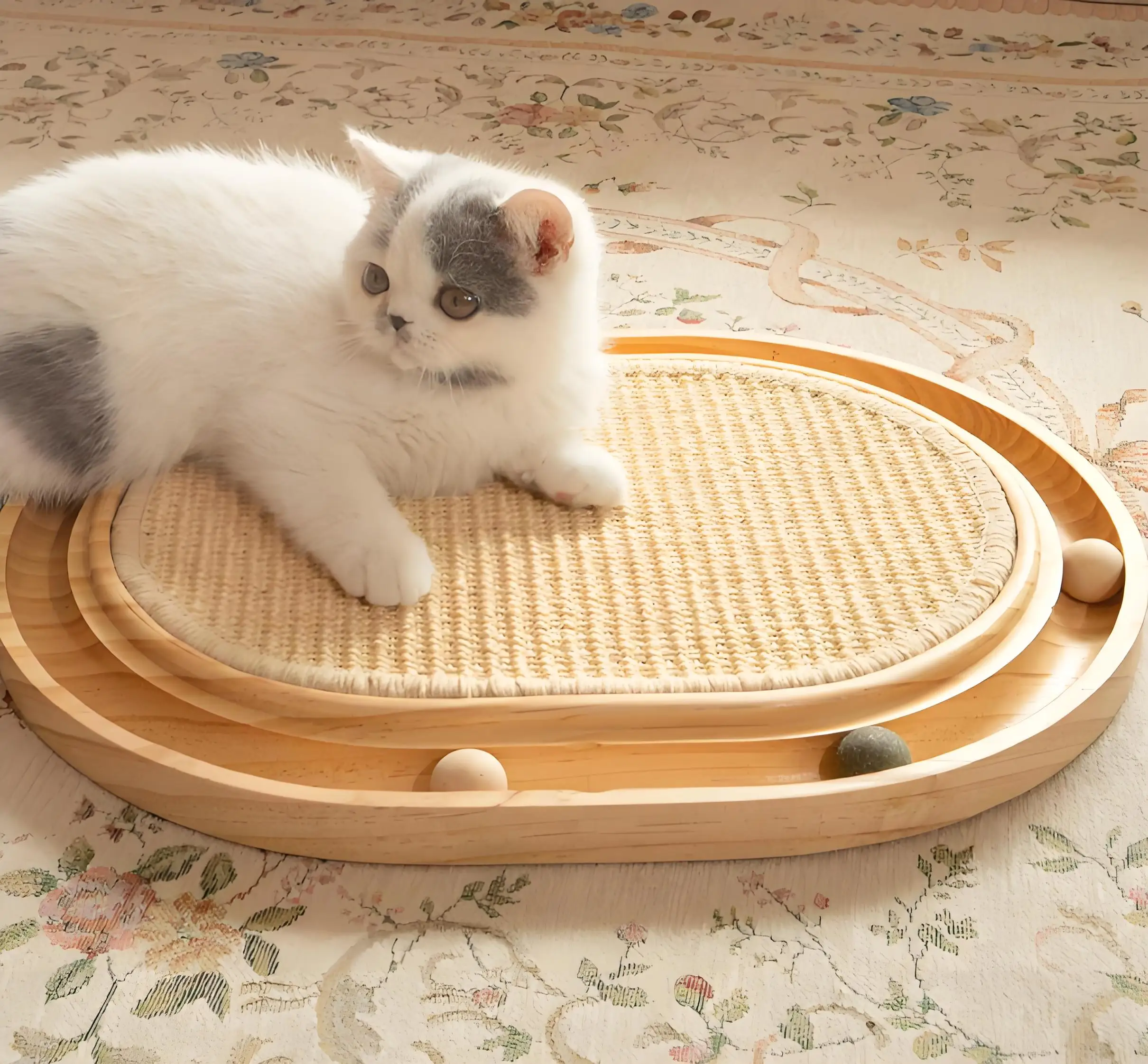Sisal Cat Scratcher Toy Ball Track Medium Indoor Wooden Interactive...