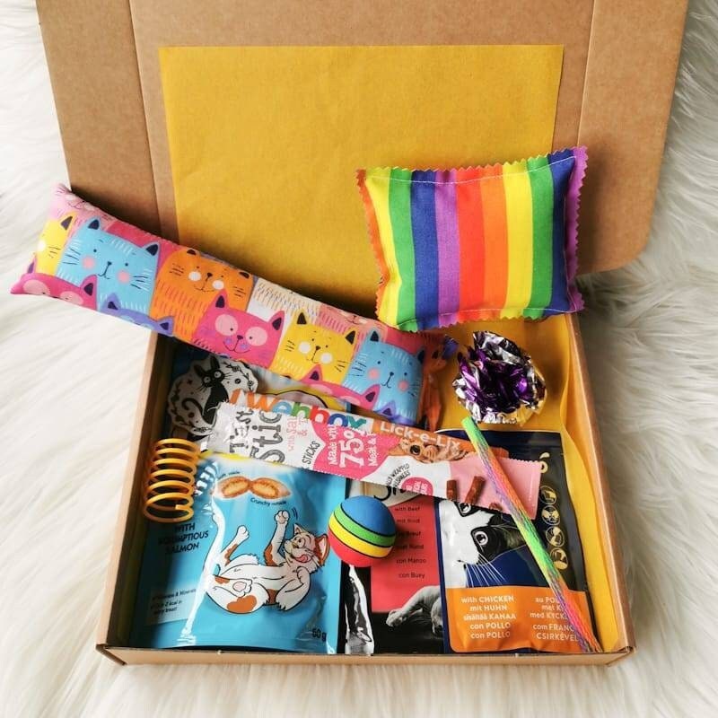 Cat Toy and Treat Gift Box, Cat and Kitten Gift Box, Cat Goodie Box...