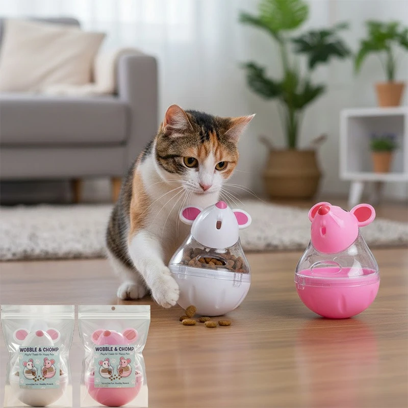 Slow Feeder Cat Toy Mouse Tumbler Treat Dispenser for Cats Small Dogs Interactive Pet Puzzle Toy Lea...