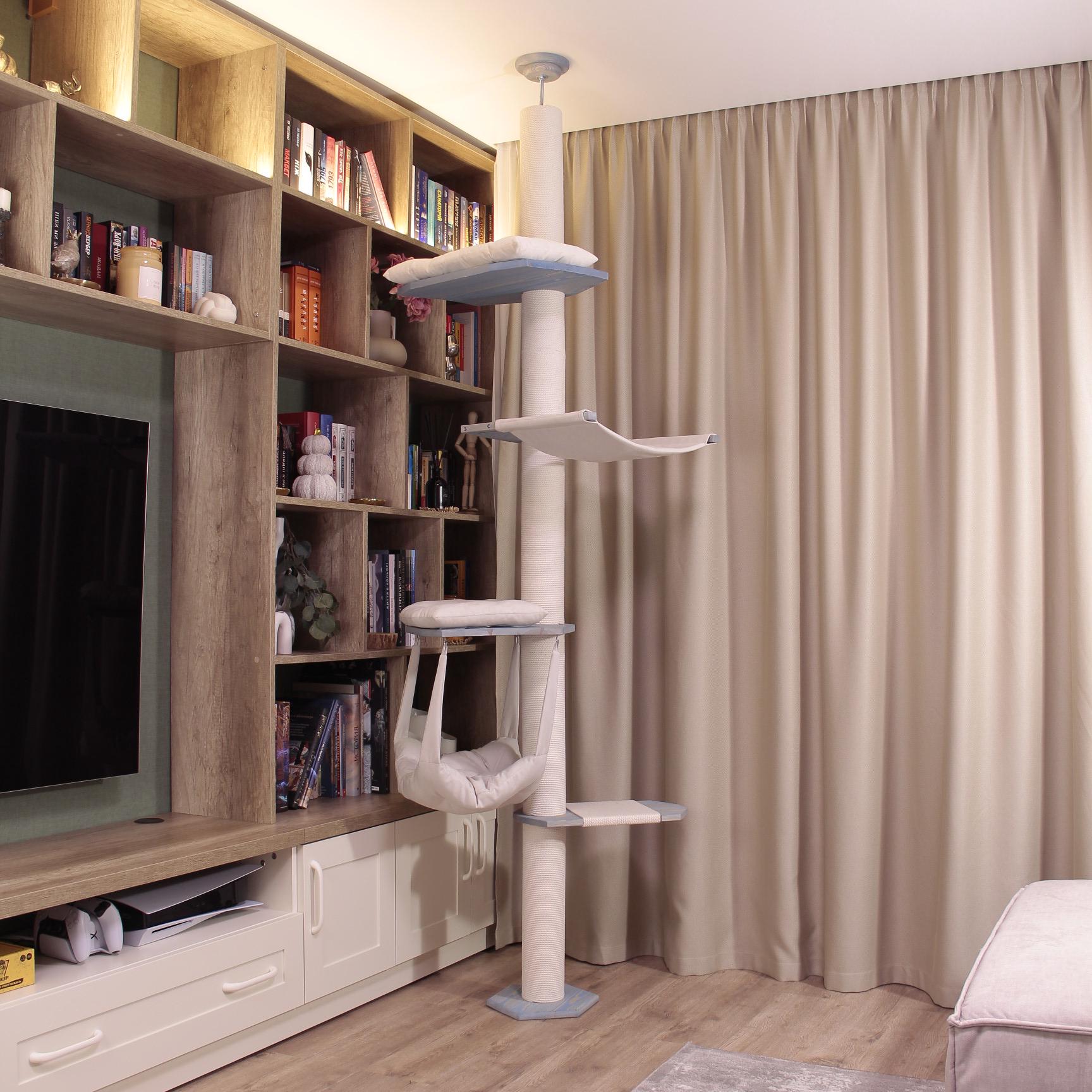 Modern Vertical Paradise - Adjustable Floor to Ceiling Cat Tower with Dual Hammocks Give your cat a ...