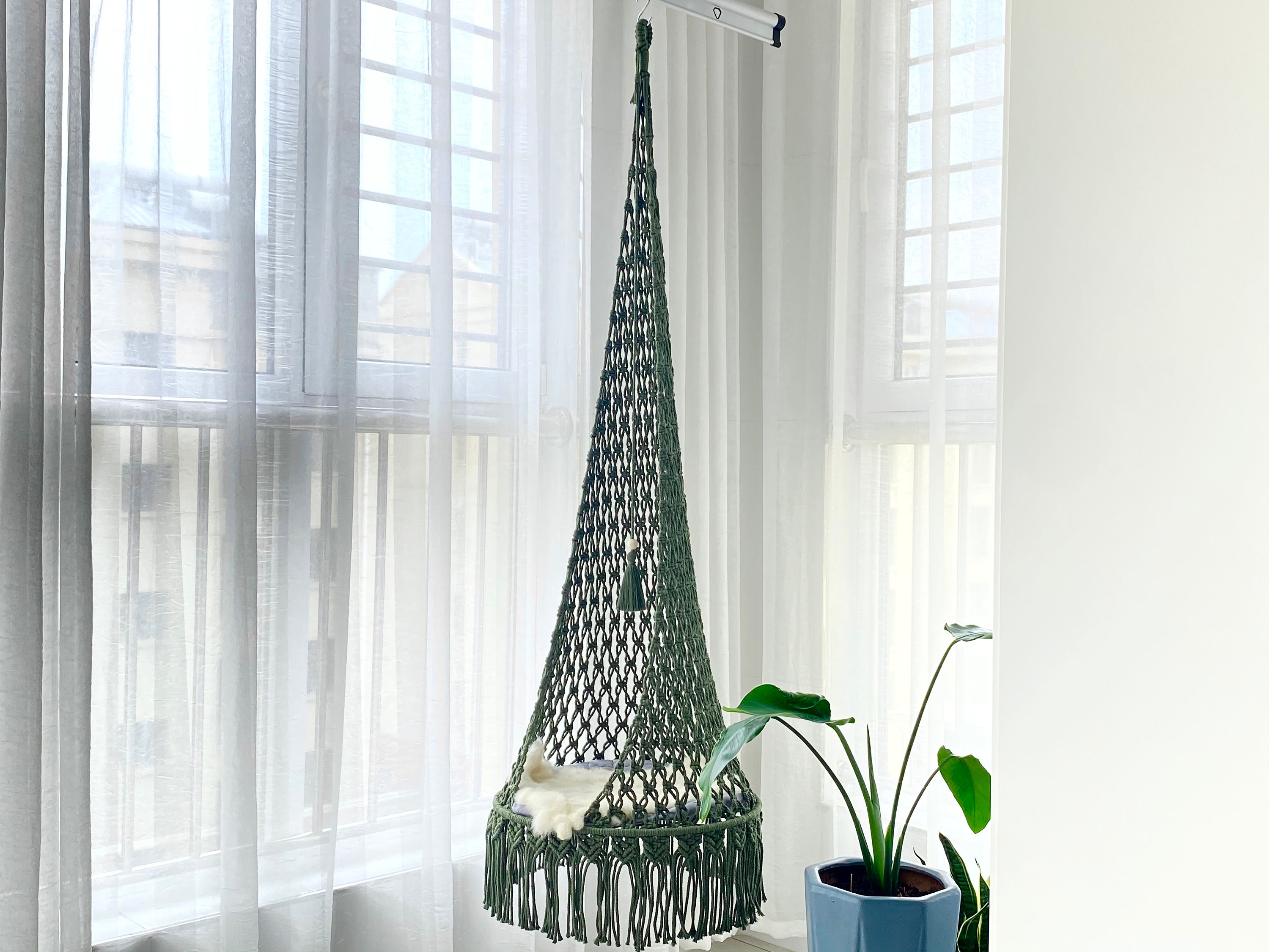 "- This is a handmade modern cat furniture - macrame cat hammock, which is made with 4mm cotton...