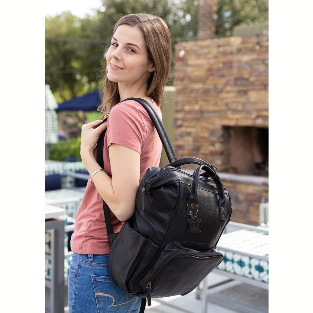 Large Black Leather Diaper Bag Knapsack Genuine Leather Diaper bag ...