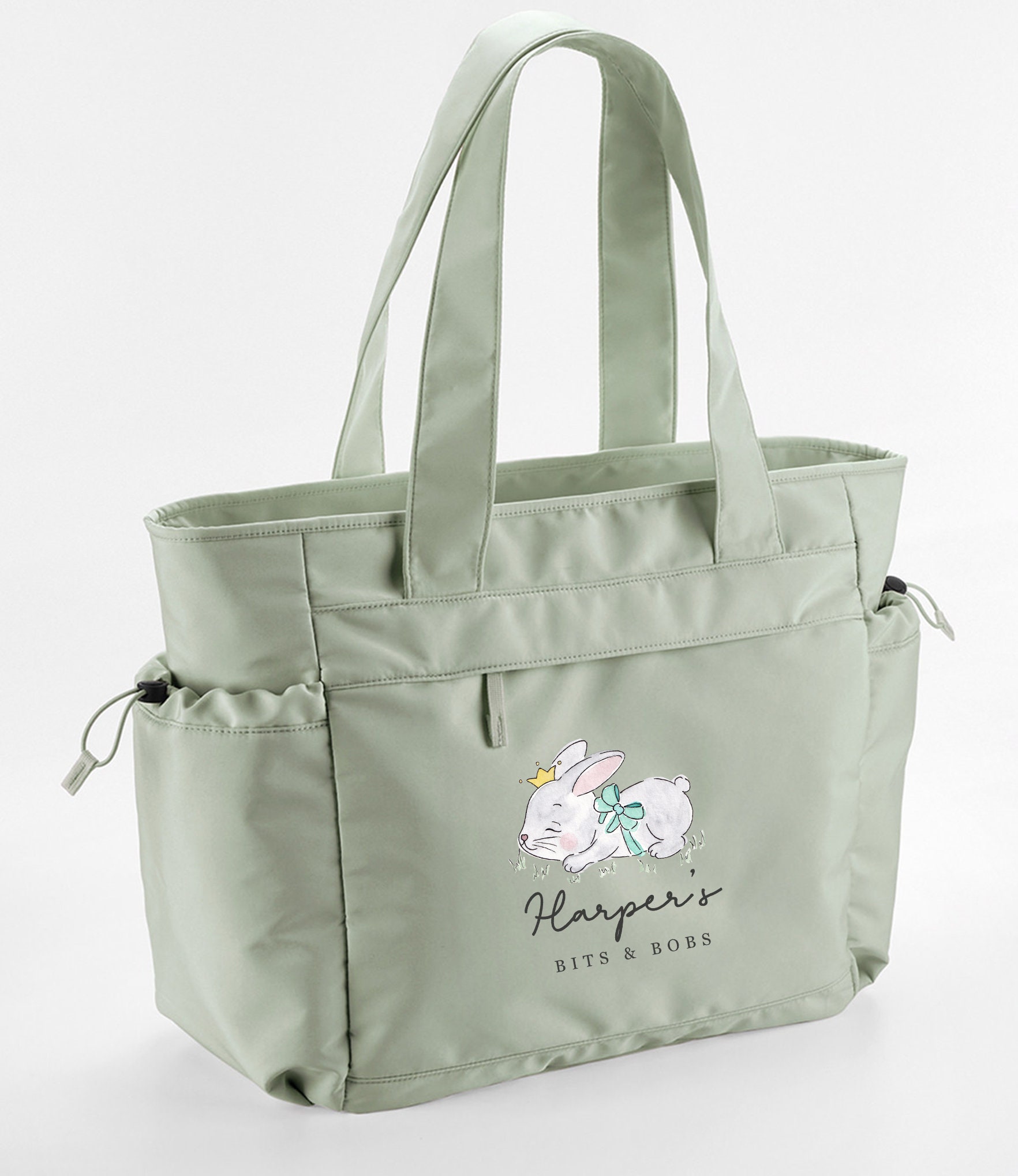 Have your very own personalised nappy / wash bag / drawstring pink or blue rabbit bag inspired by Be...