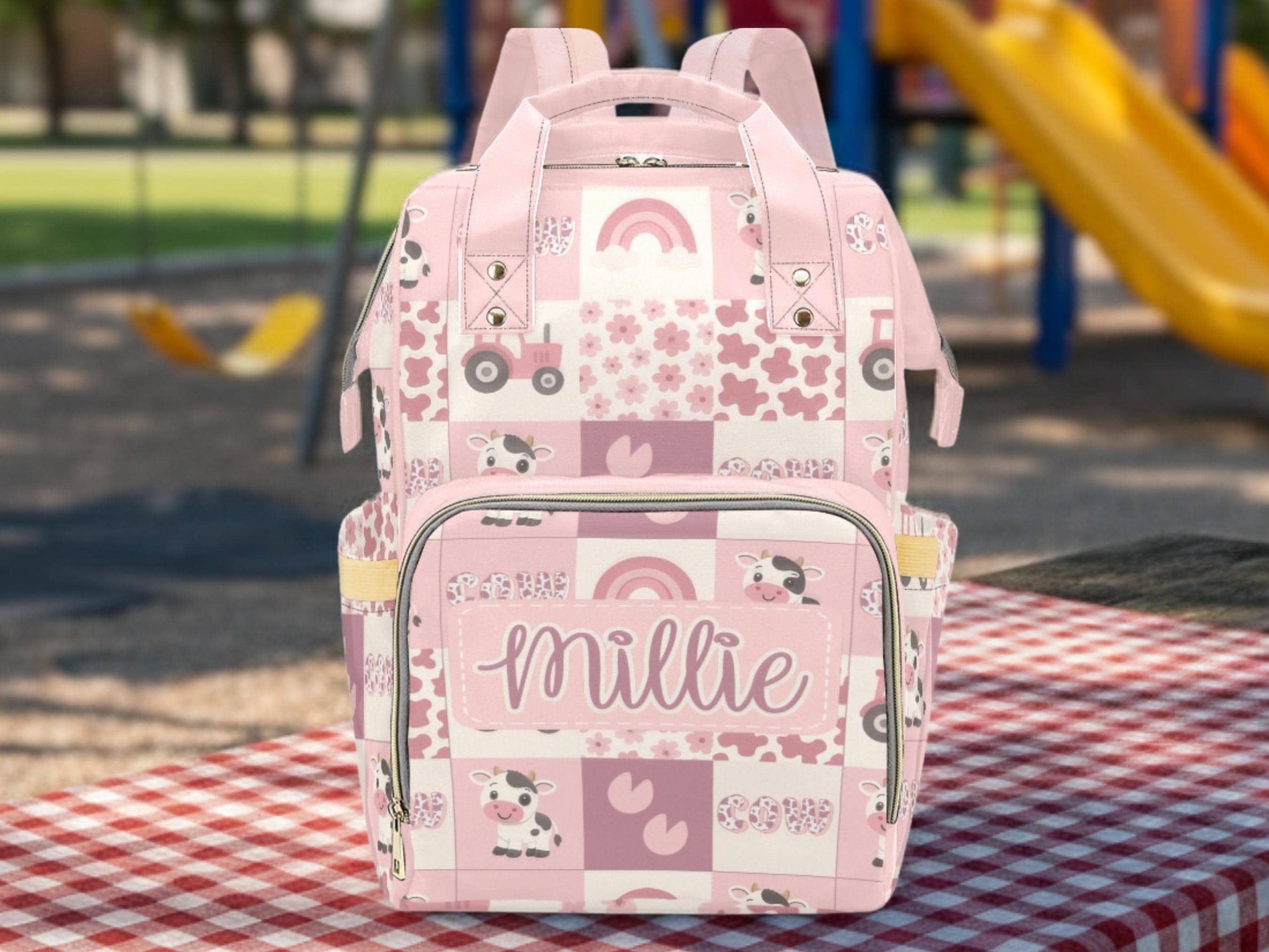 Custom Girl Baby Bag Baby Name Backpack Personalized Diaper Bag Cow...