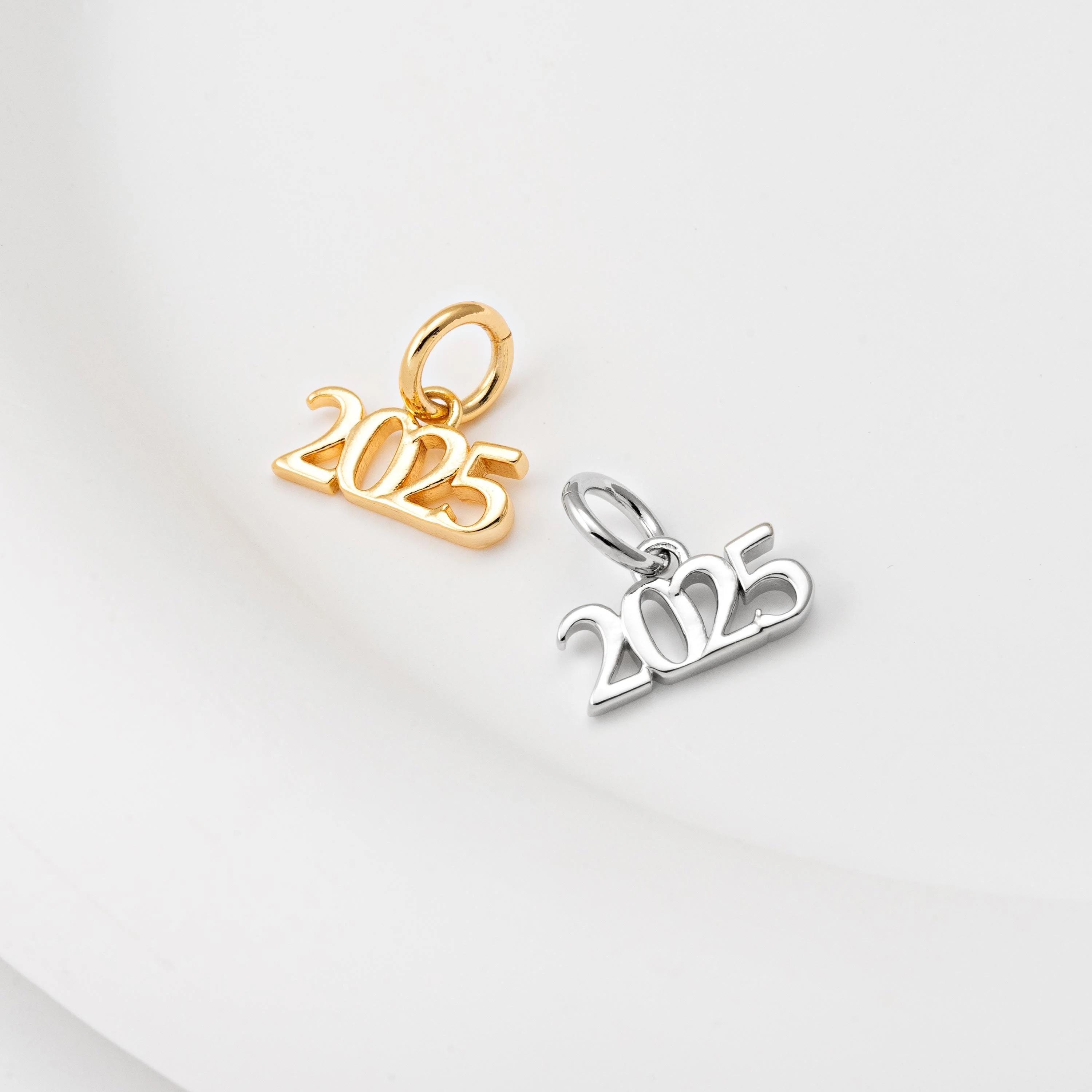 Sterling Silver 2025 Charm, 2025 Year Pendant, 2025 Graduation Char...