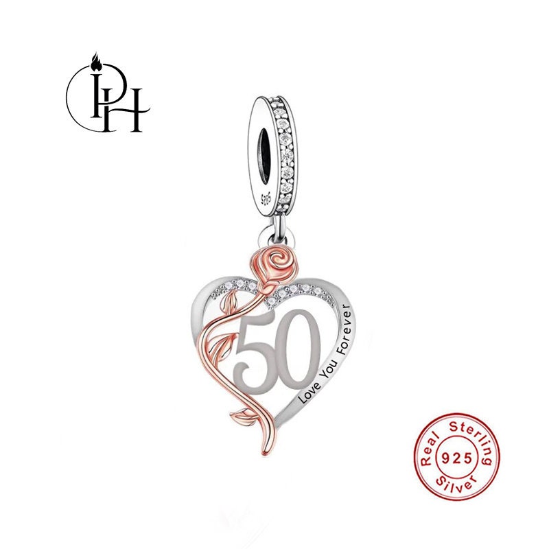 50th Birthday Charm Pandora Fitting Heart I Love You Forever 925 St...