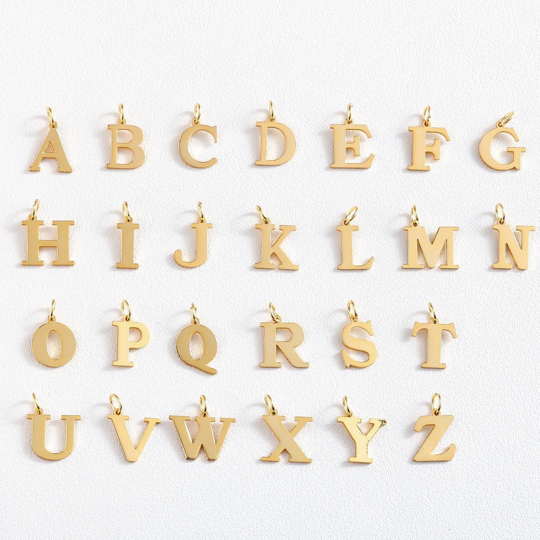 Stainless Steel A-Z Alphabet Pendant, Letter Charm, Gold Alphabet C...