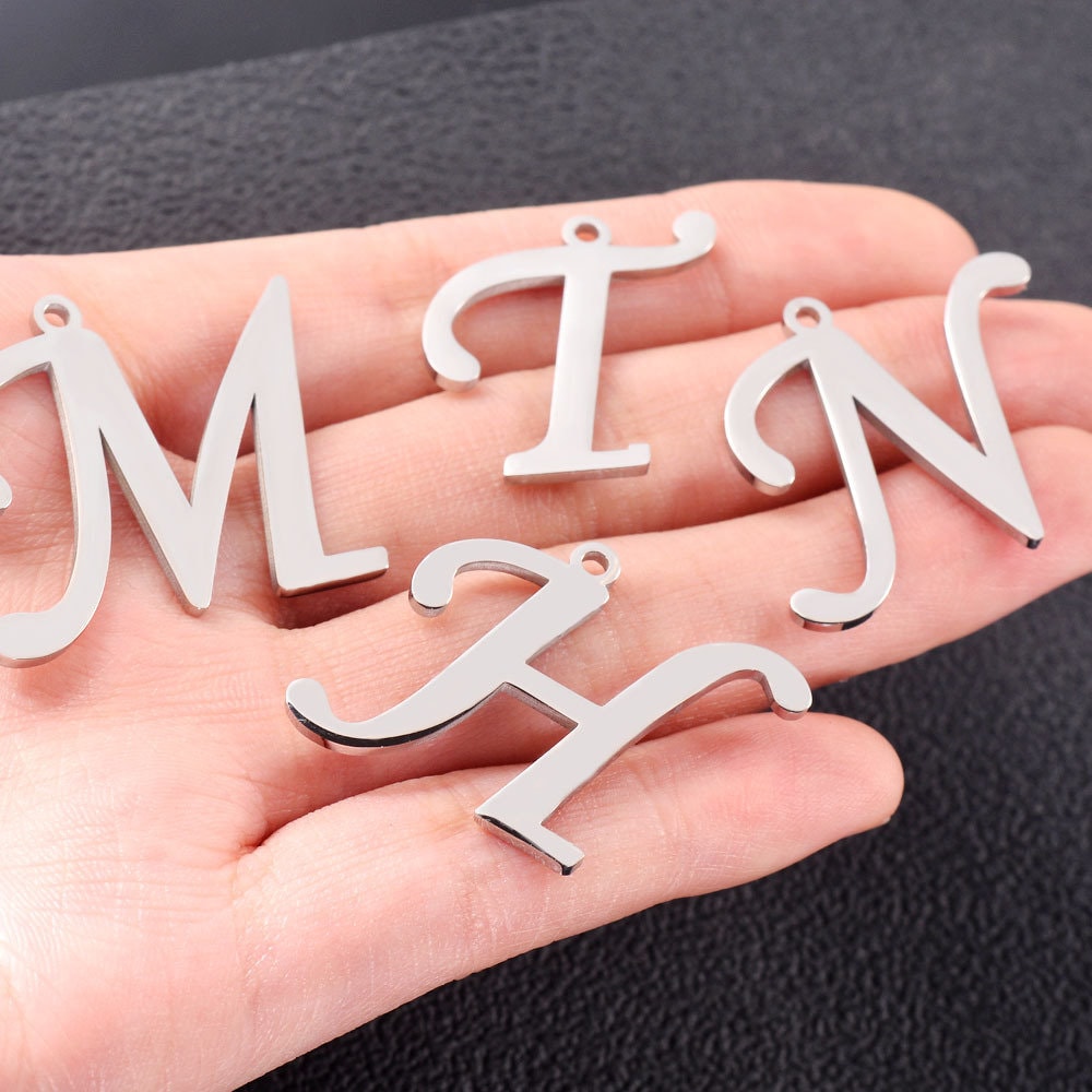 2PCS - A~Z Stainless Steel Initial Alphabet Charm Beads, 4x8mm Alphabet Letter Charms, Bracelet Neck...