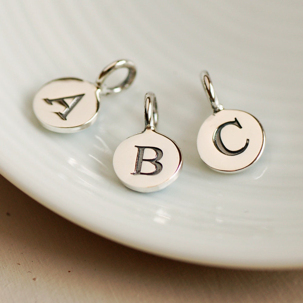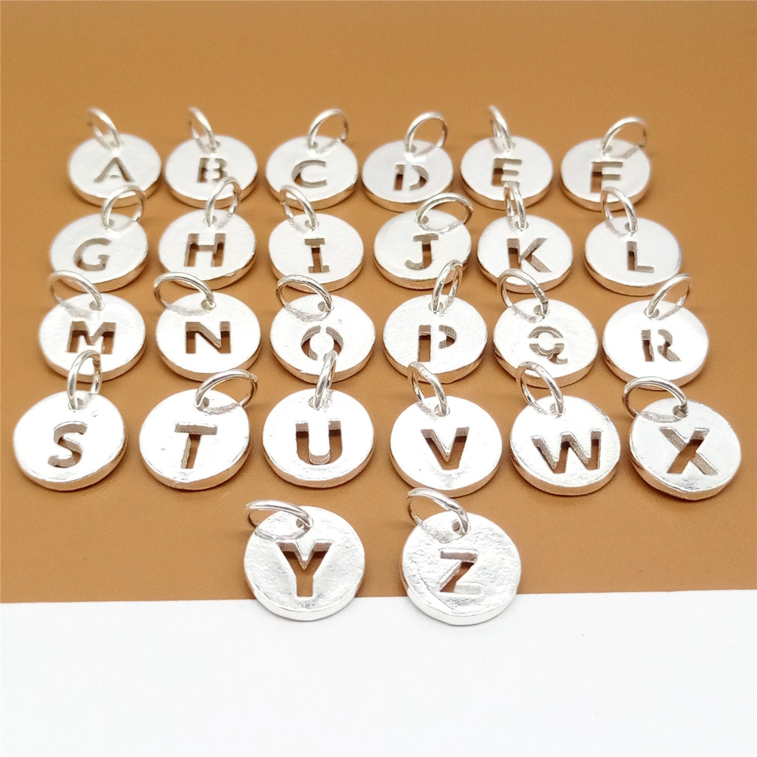 Sterling Silver Initial Charm, Letter Disc Charms, Alphabet Charms,...