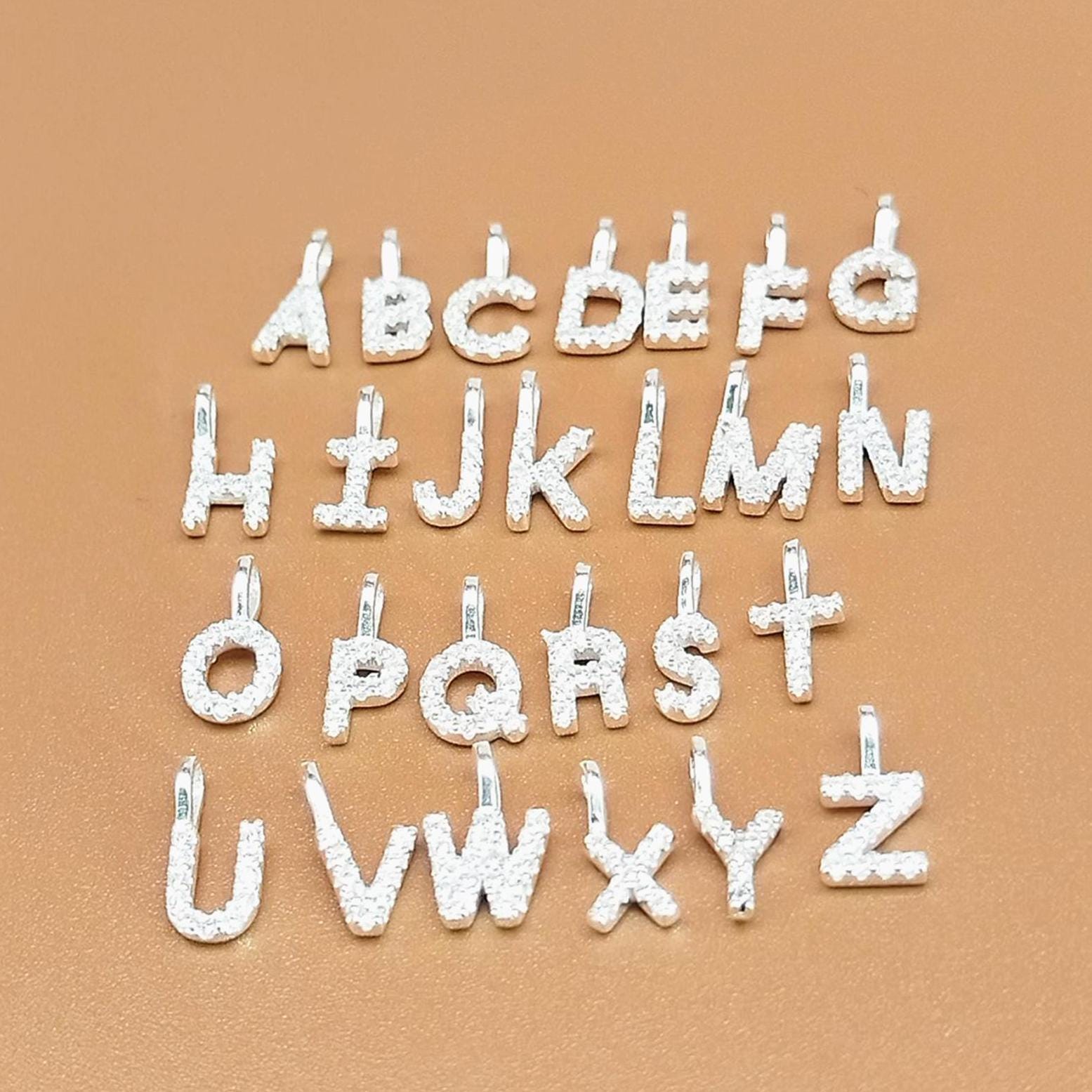 S925 Letter Charm, 925 Sterling Silver 26 Alphabet Letter Pendant, ...