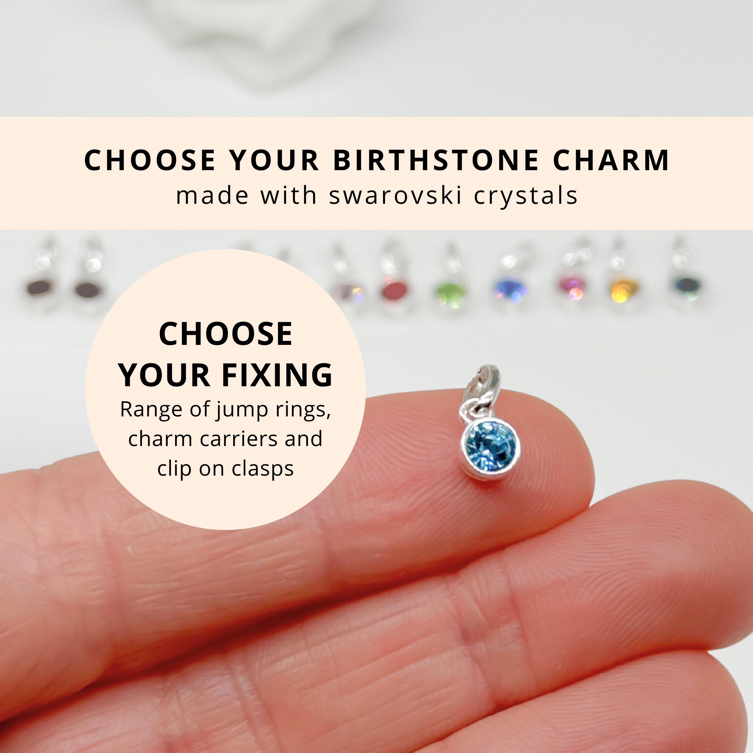 925 Sterling silver birth month swarovski crystal charm with a choice of fixings available, so you c...