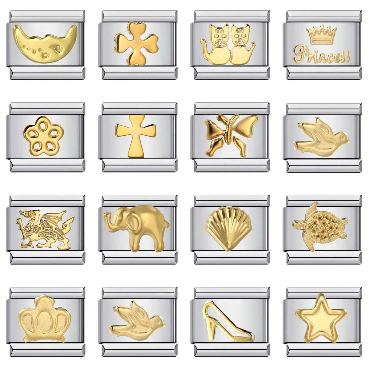 URING 1pc Gold Color Heart Butterfly Clover Sun Italian Charm Links Fit 9mm Stainless Steel Bracelet...