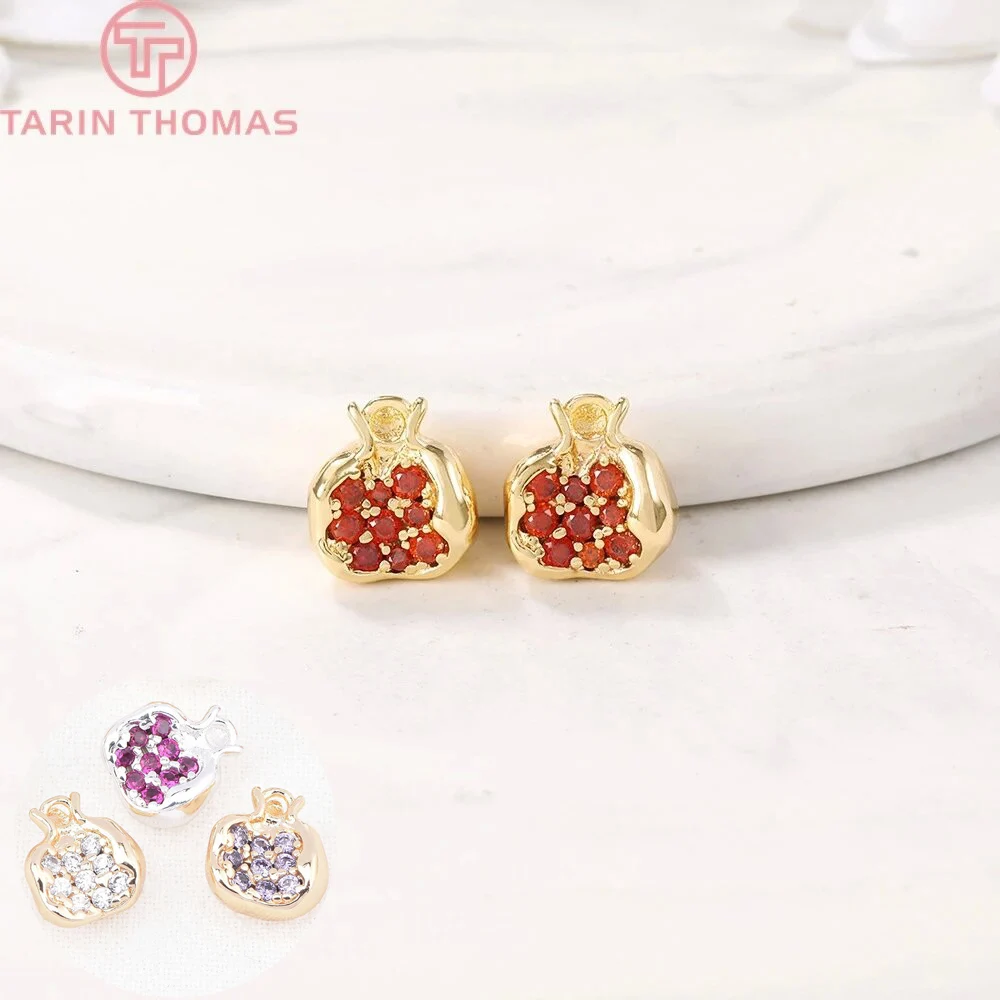 (1467)4PCS 10.5x9.5MM 24K Gold Color Plated Brass with Zircon Pomegranate Charms Pendants High Quali...