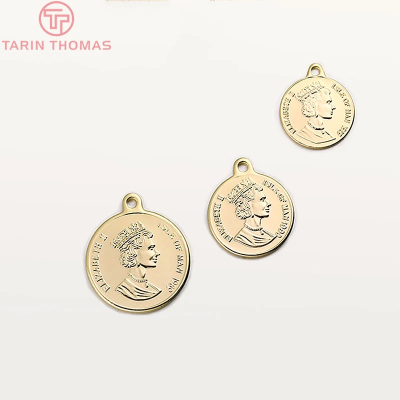(835)6PCS 13*15MM 15*18MM 18*21MM 24K Gold Color Brass Queen of England Coin Charms Pendants Diy Jew...