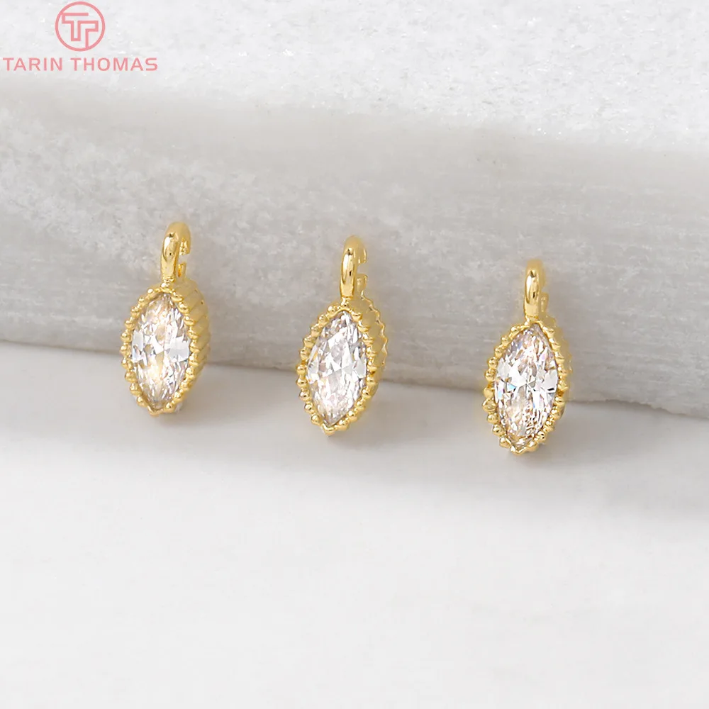 (814)10PCS 3x6.5MM Hole 1MM 24K Gold Color Plated Brass with Zircon Horse Eyes Charms Pendants High ...