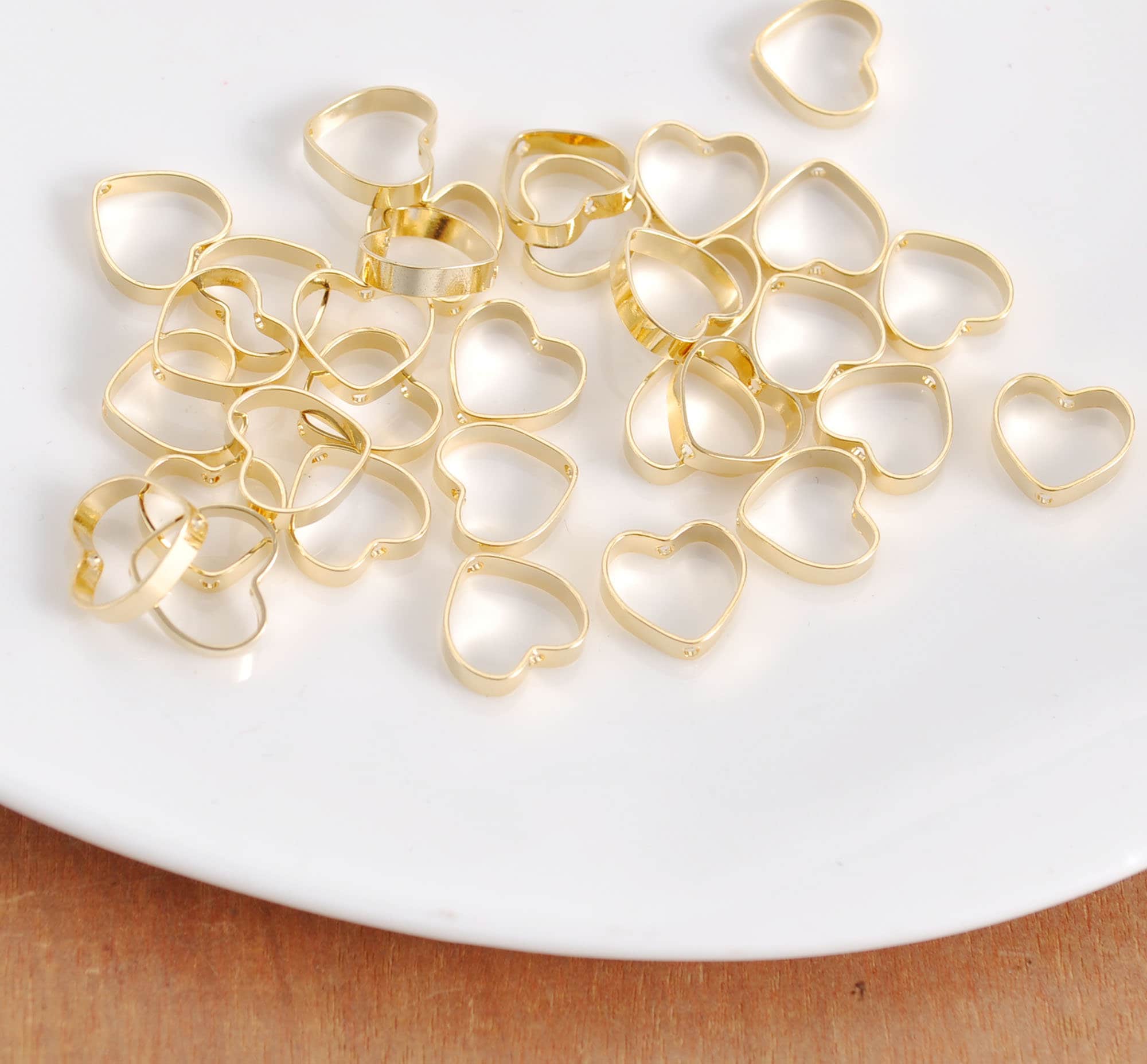 10/20/50Pcs 18k Gold Heart Link, Real Gold Plated Heart Charm,Heart...