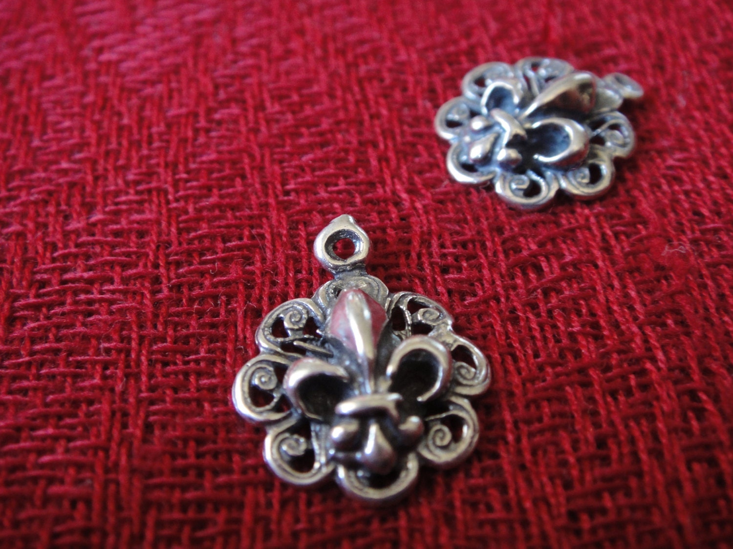 1pc 925 sterling silver oxidized Fleur De Lis charm, or pendant, st...