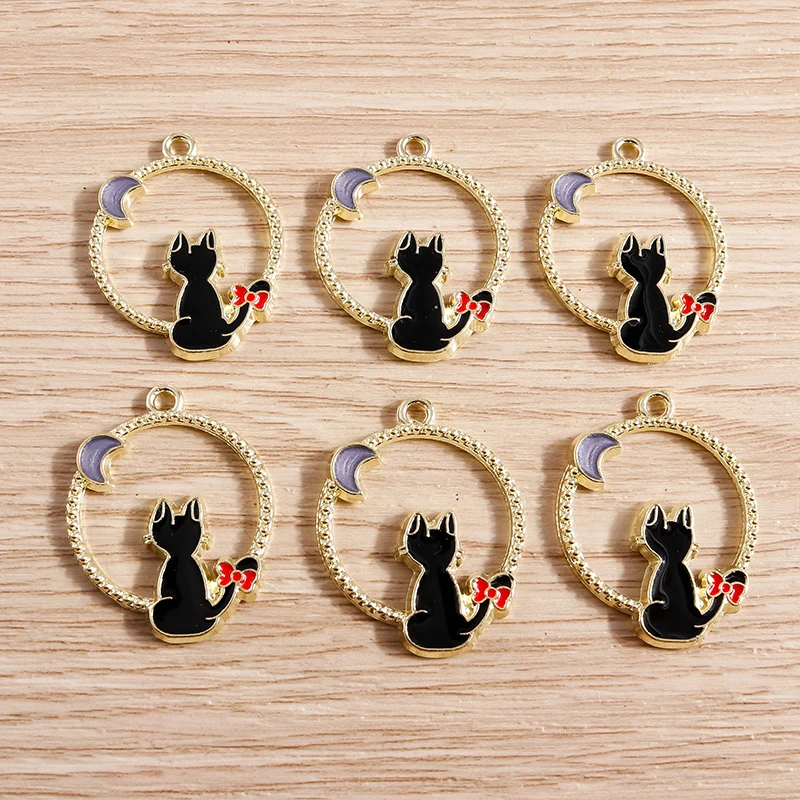 10pcs 22x28mm Cartoon Animal Cat Charms Enamel Moon Charms Pendants for Jewelry Making Necklaces Ear...