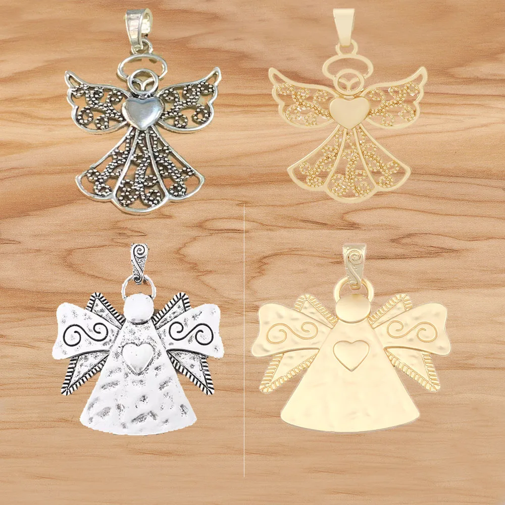 2 Pieces Large Matte Silver/Gold Color Guardian Angel Charms Pendants for Fashion Necklace Jewellery...