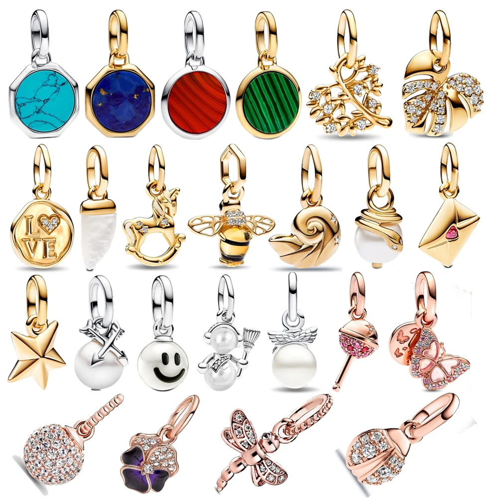ME Series 925 Sterling Silver Mini Badge&Golden Leaves&Bees&Dragonflies&Smiles&A...