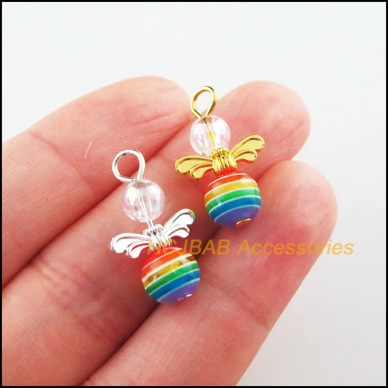 Fashion 15Pcs Retro Gold Silver Plated Rainbow Acrylic Clear Head Angel Charms Pendants 13x22mm