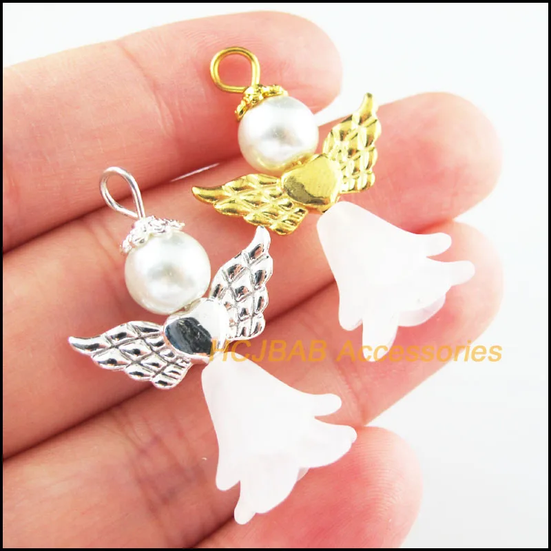 10Pcs Retro Gold Silver Plated White Acrylic Angel Charms Pendants 21.5x33mm