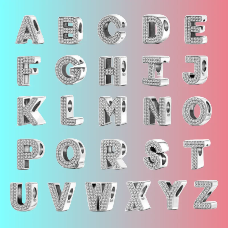26 A-Z Alphabet Beads Silver Plated LOVE Letter Charm Fit Original ...