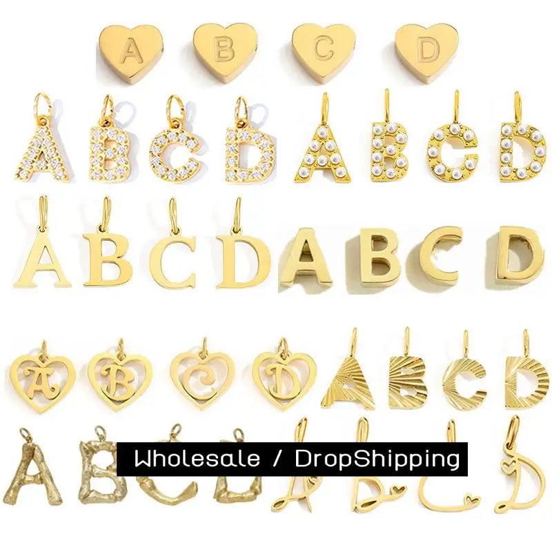 CARLIDANA 26 Letter Charms Set Heart Zircon Pearl Initial A-Z Alphabet Letter Gold Plated Stainless ...