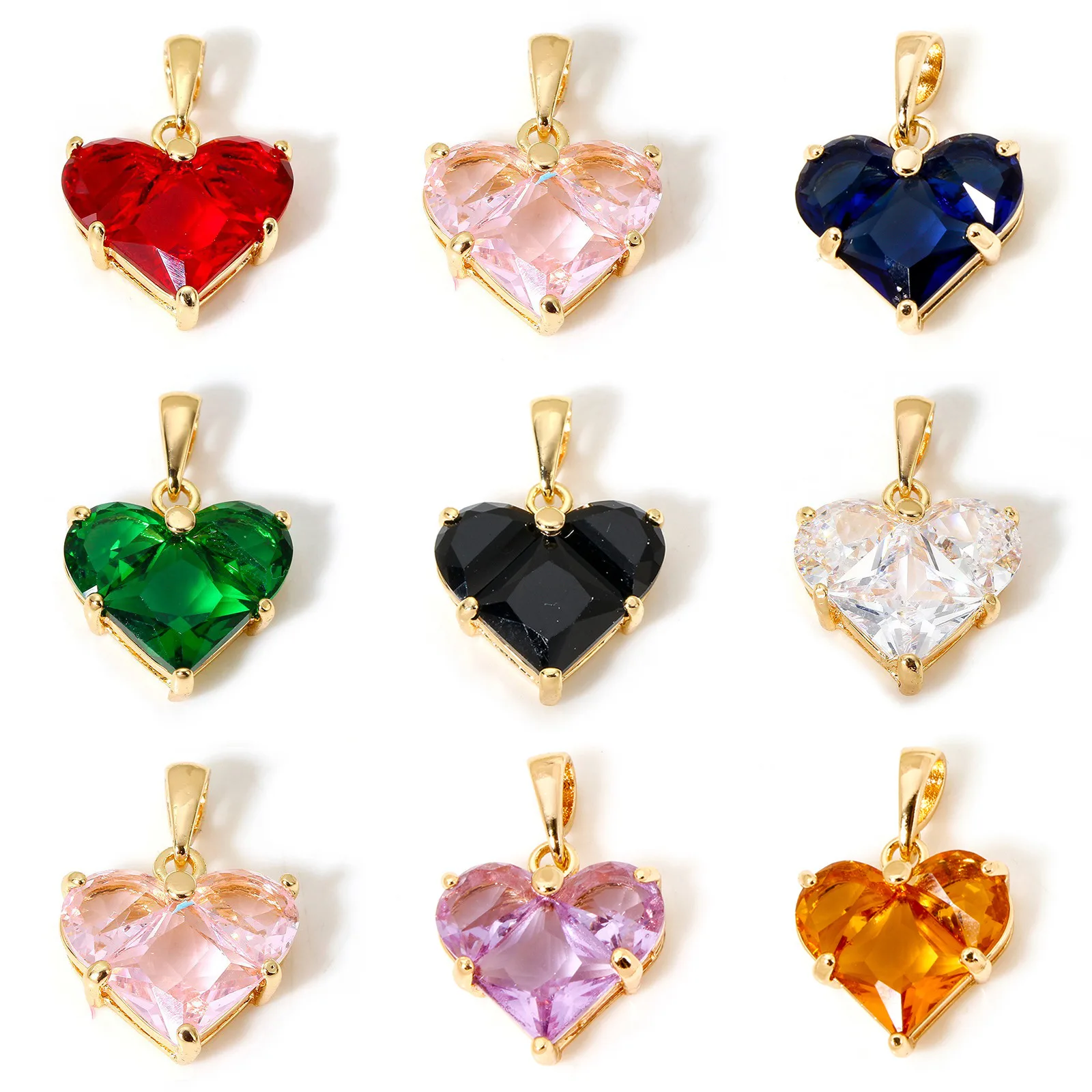 1 Piece Sweet Copper Valentine's Day Charms Gold Color Heart Cubic Zirconia Pendants For DIY Necklac...