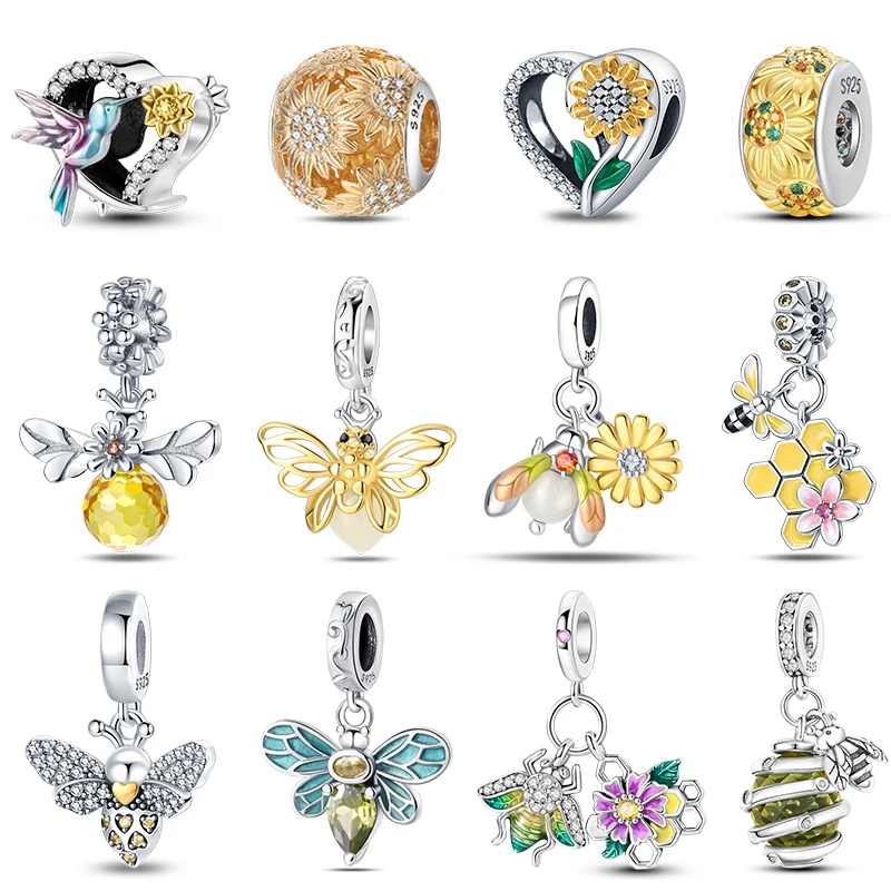 100% 925 Sterling Silver Sunflower luminous Gem Bees Charms Beads Fit Pandach 925 Original Bracelets...