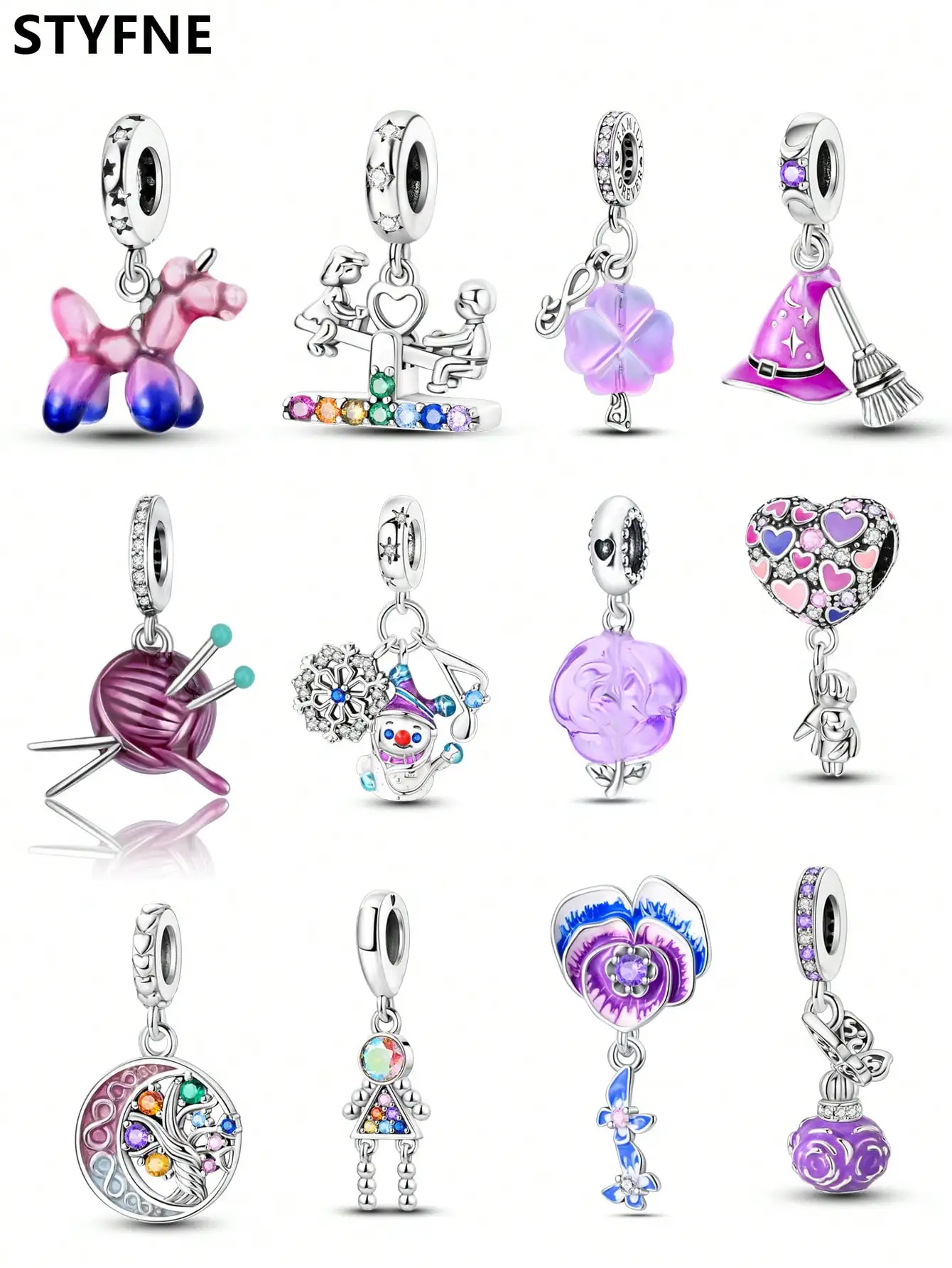 Charms Plata Pink Flower Heart Hat Bead Charm Silver Plated Fit Cha...
