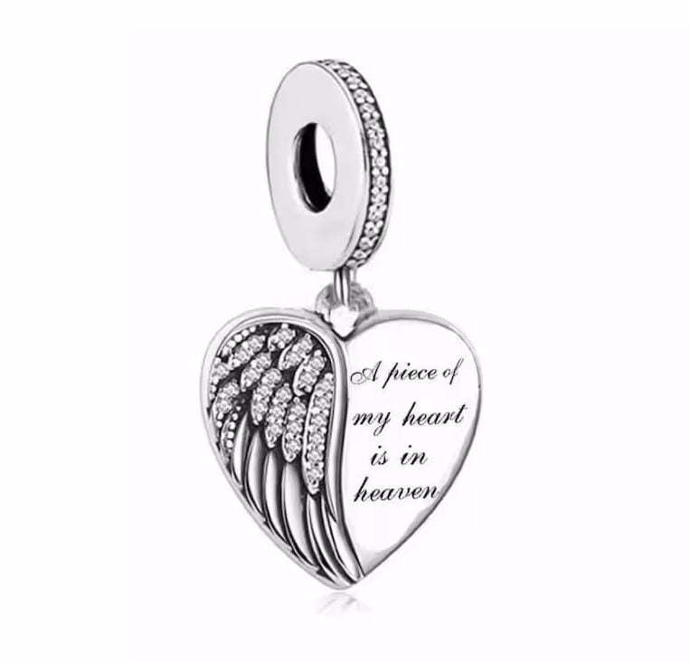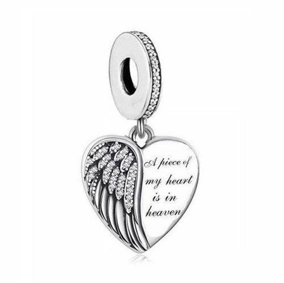 S925 Sterling Silver Angel A Piece of My Heart is in Heaven Charm P...