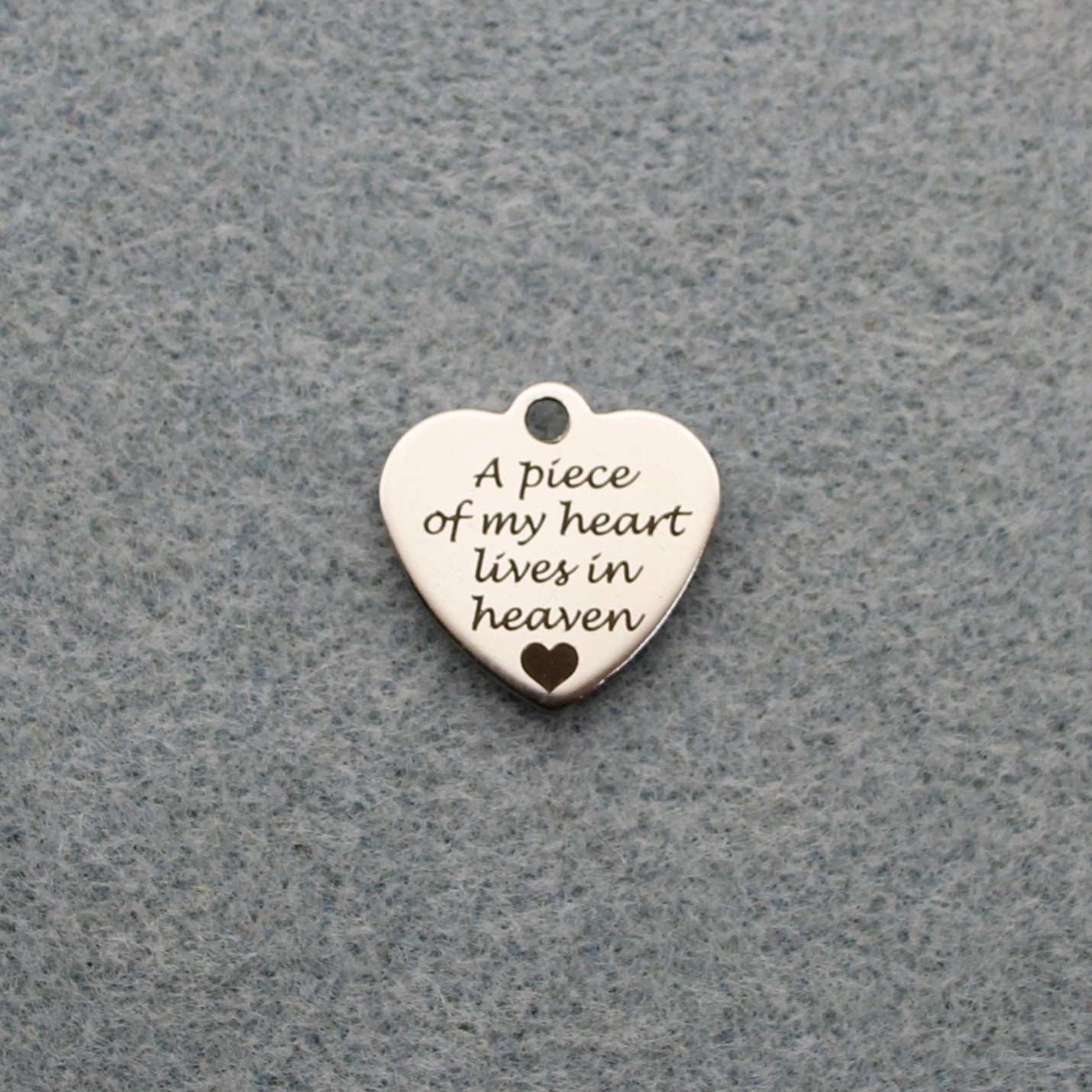 Stainless Steel Heart Shaped Charm engraved with A piece of my heart is in heaven. This charm is 16 ...
