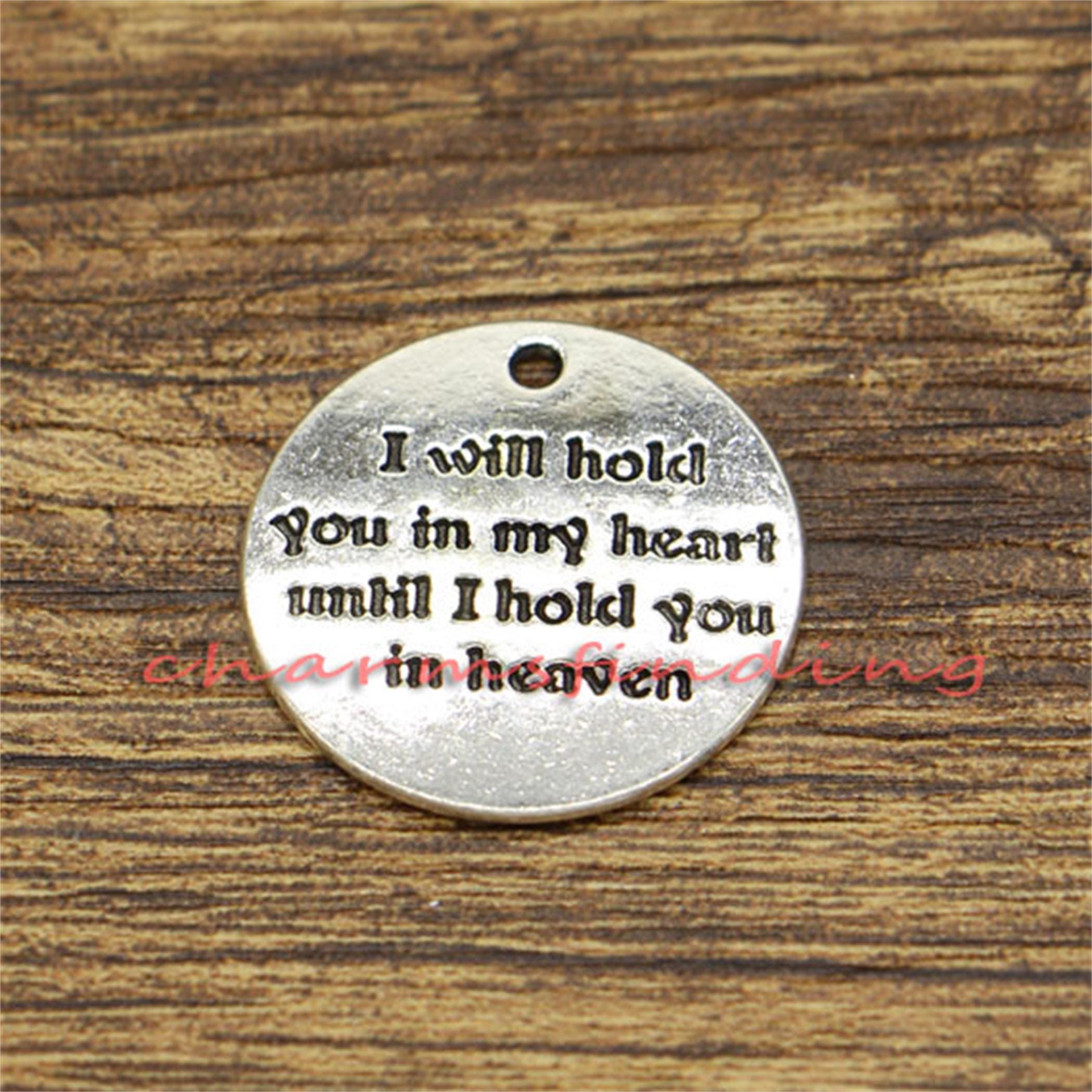 "10pcs I will hold you in my heart until I hold you in heaven Charms Word Charms Antique Silver...