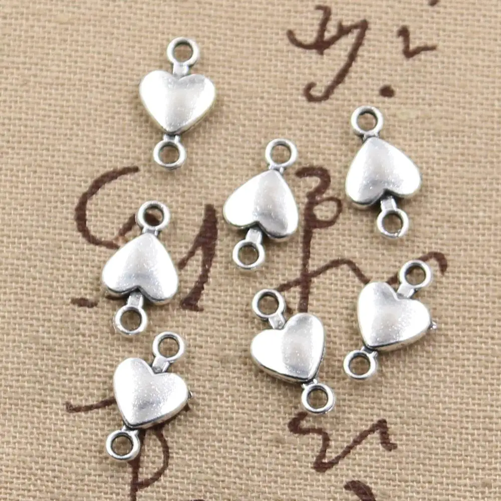 50pcs Charms Heart Connector 15x7mm Handmade Craft Pendant Making fit,Vintage Tibetan Silver color,D...