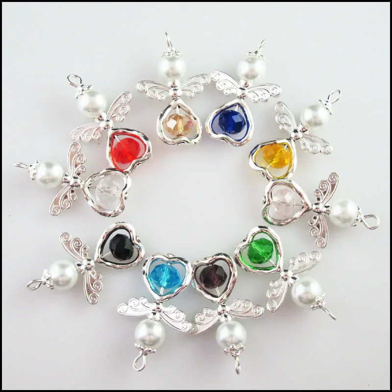 10Pcs Mixed Heart Crystal Angel with Ball Glass Beads Charms Pendants 22x33mm