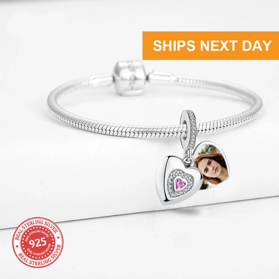 925 Sterling Silver, Custom Photo Charm of Bracelet, Fits Pandora B...