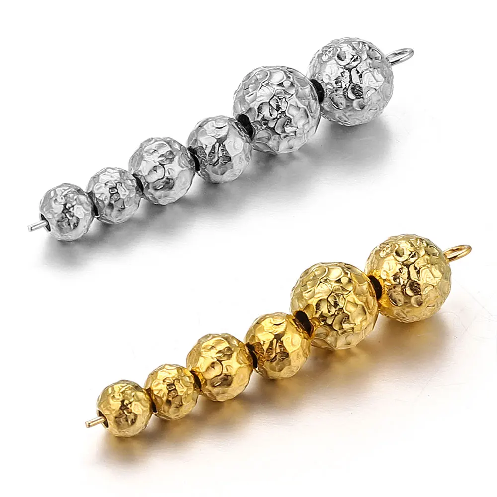 10pcs 4 6 8mm Gold Plated Stainless Steel Frosted Hammered Ball Beads Charm Loose for Bracelet DIY J...