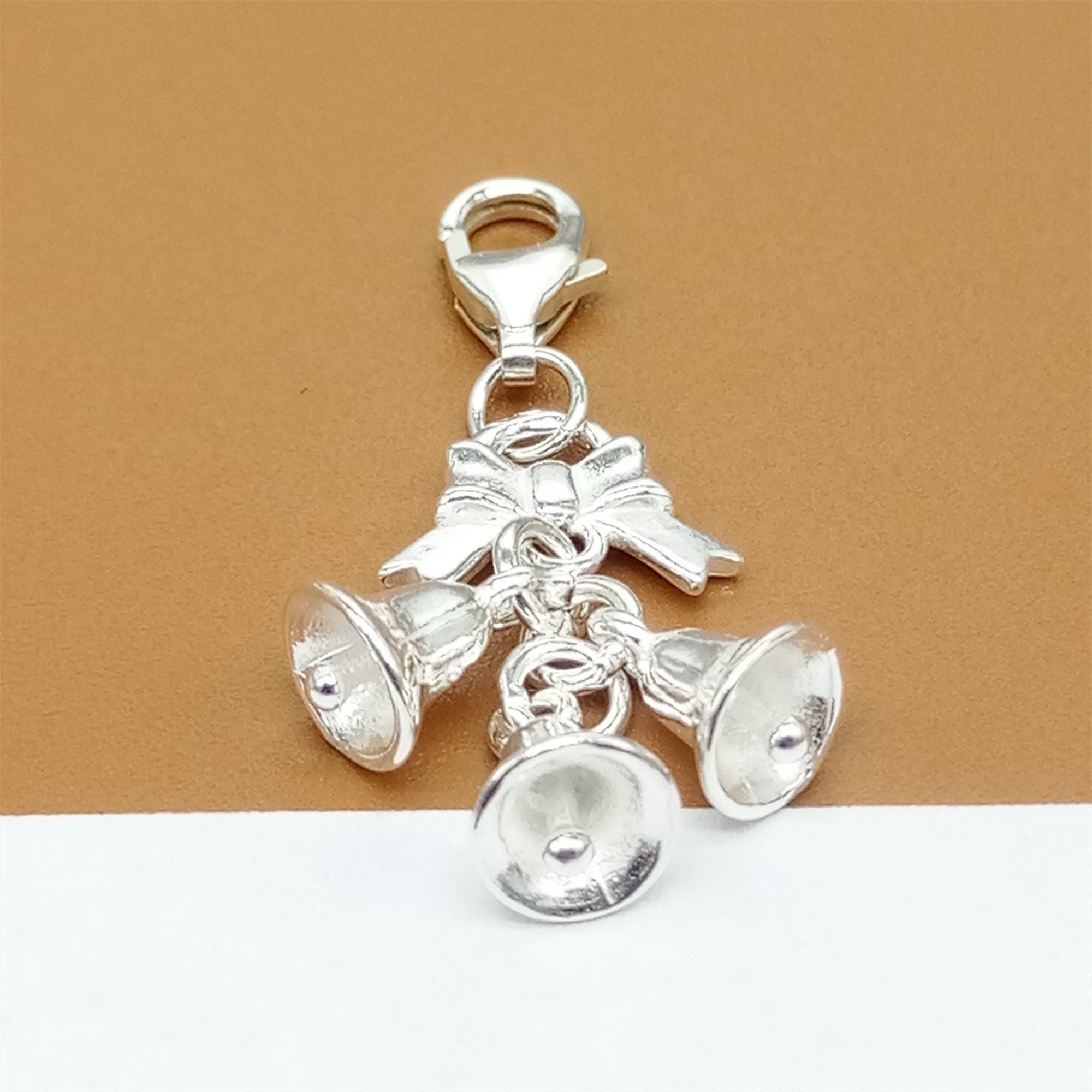 Sterling Silver Jingle Bell Clip On Charm, 925 Silver Bell Clip Cha...