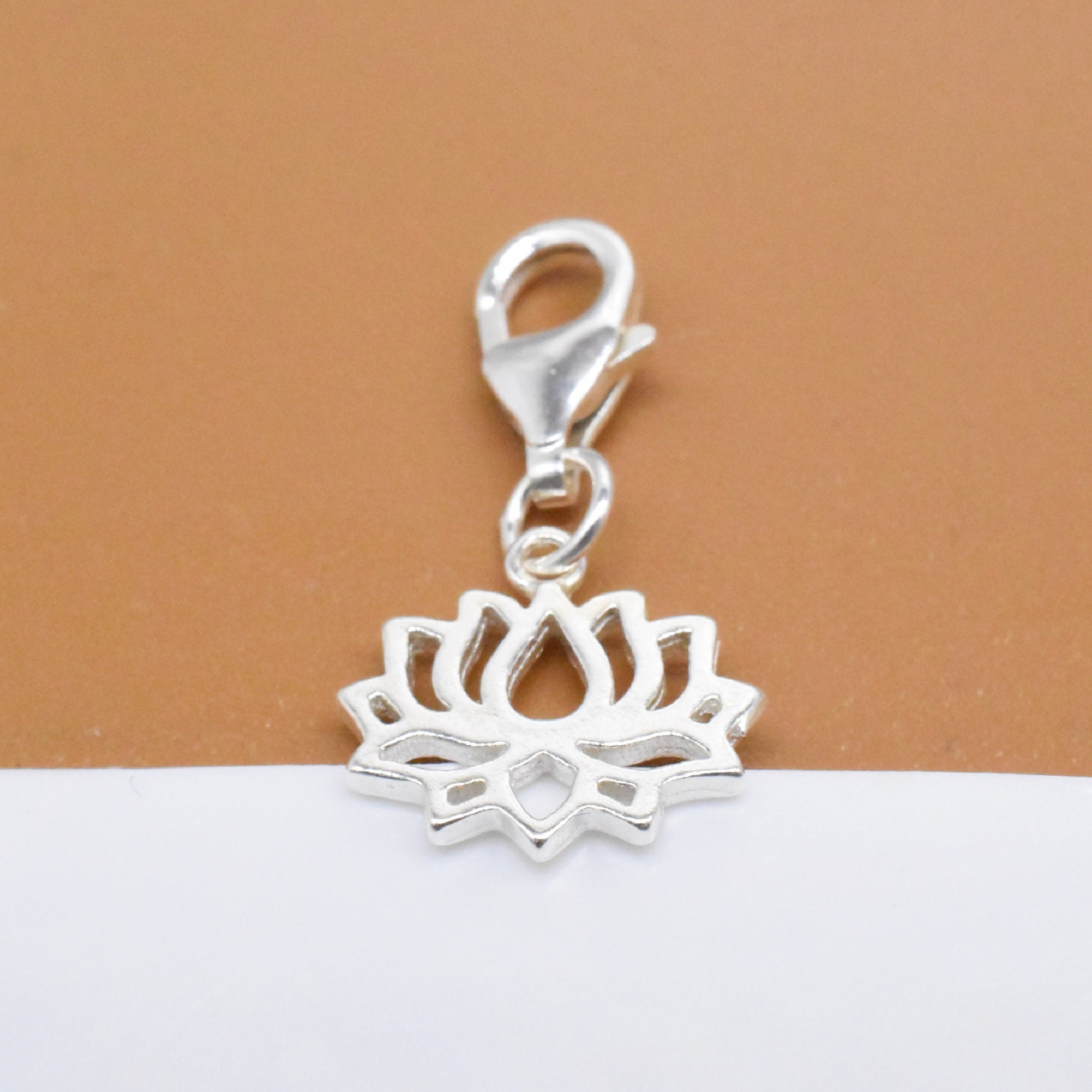 Sterling Silver Lotus Clip On Charm, 925 Silver Flower Clip On Char...